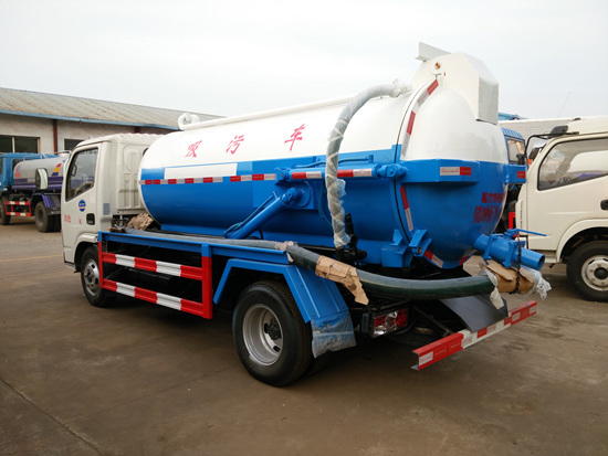 吸污車專用部分由取力器、傳動軸、真空吸污泵、壓力罐體、液壓部分,管網系統、真空壓力表、視糞窗、洗手裝置等組成,隨車配置大功率真空吸污泵和優質液壓系統,罐體封頭一次壓鑄成型、罐體可后開、雙頂自卸。罐內污物可通過后蓋直接傾倒,具有真空度高(比吸糞車的吸力更大)、噸位大、效率高、用途更廣泛的特點。